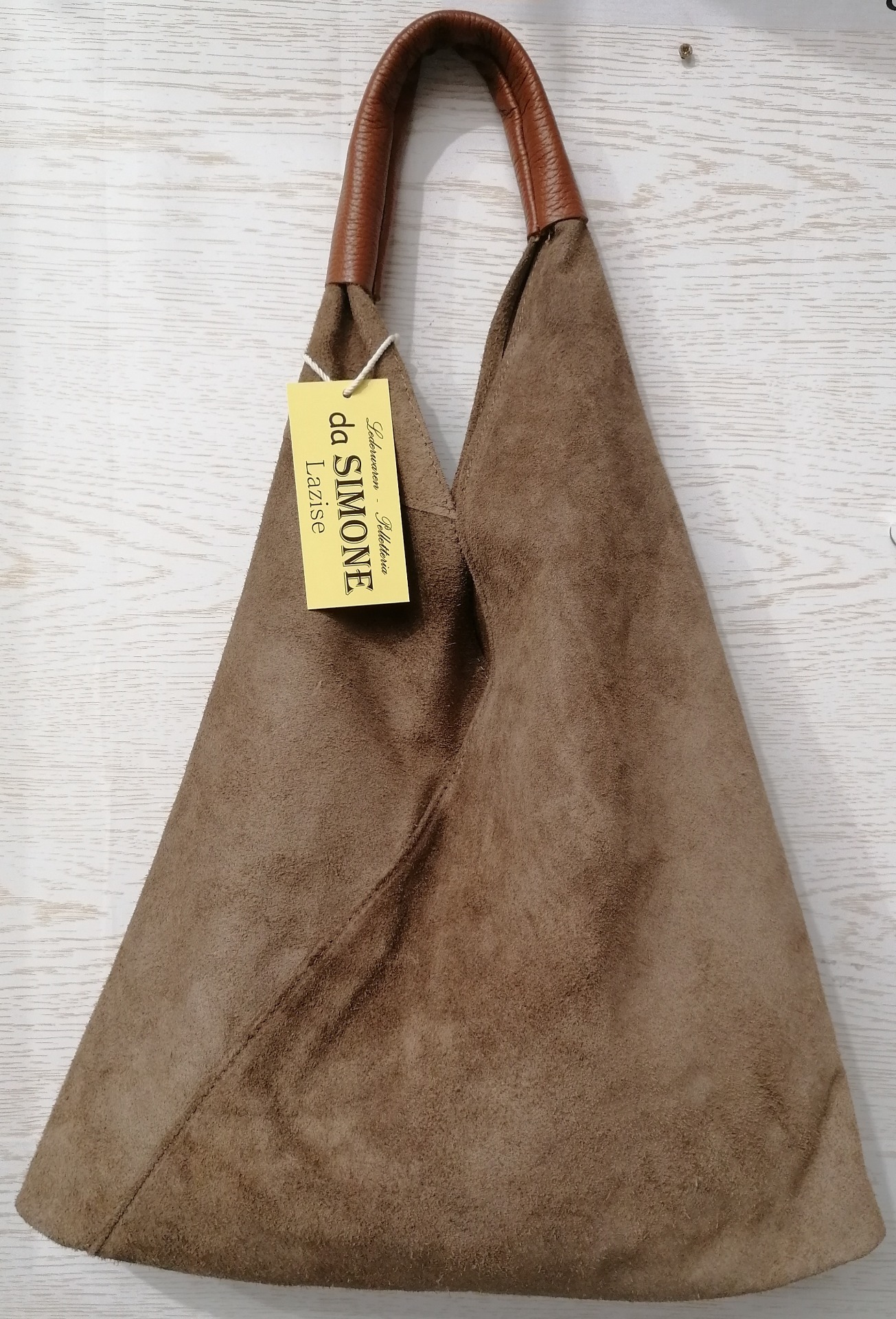 SACCA PELLE CAMOSCIO BEIGE SCURO